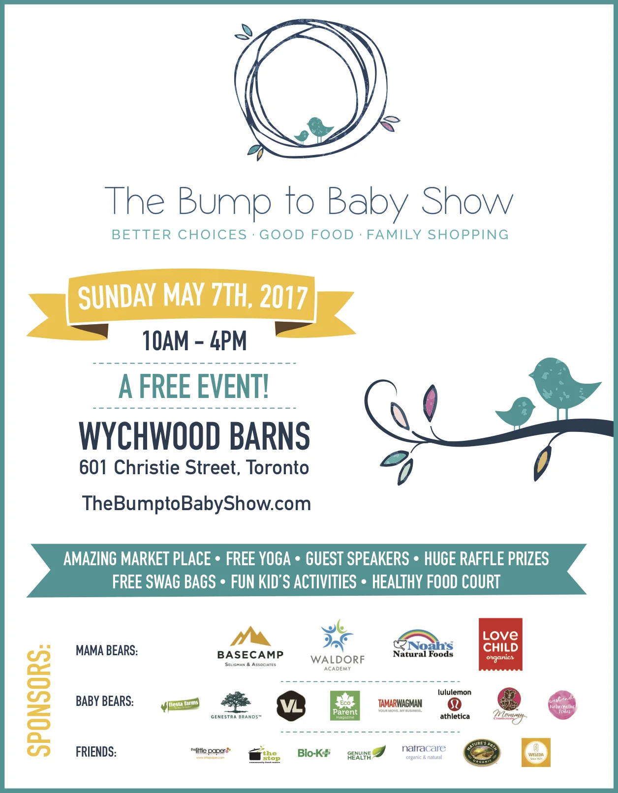 Spring is here and that means it's baby show season! With so many shows and so little time, it can be tough to decide which ones make the cut. If you want to skip the huge crowds, long line ups and over zealous vendors, you need to check out The Bump to Baby Show. This highly curated event held at the beautiful Wychwood Barns brings together the best vendors from around our city, all with a focus on helping parents make healthy choices for their families. Plus it's FREE!! You can't get much better than that.
