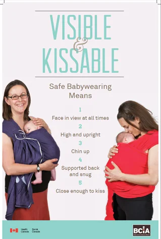 The importance of fresh air flow around our infant is one of the key messages in SIDs prevention and safe sleep, and is just as essential when our baby is in a car seat, stroller, or baby carrier. Seeing our baby's face allows us to assess their well being through their skin tone and breathing patterns. When we cover our baby completely, they lose access to fresh air, and we lose the ability to ensure they are well. The American Academy of Paediatrics reminds parents to "Be sure to leave baby's face uncovered to avoid trapped air and re-breathing.” It's important that parents are aware that covering a baby’s face completely in a carrier, car seat or stroller can lead to overheating and suffocation (eg. Image B below).